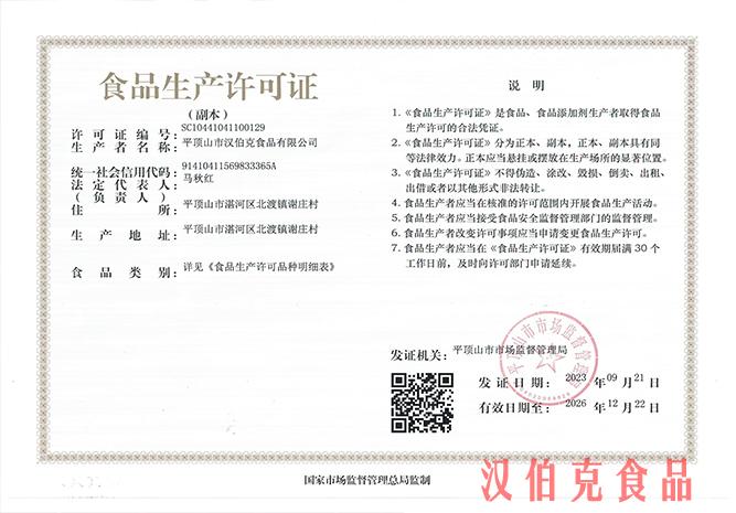 平頂山市漢伯克食品有限公司成立于2011年3月,是一家專注于各類肉灌腸、速凍制品、以及醬鹵制品的研發(fā) 、加工、生產(chǎn)及銷售的食品企業(yè),廠區(qū)位于河南省平頂山市湛河區(qū)謝莊村(省級生態(tài)文明示范村)。